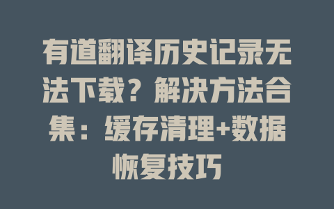 有道翻译历史记录无法下载?解决方法合集:缓存清理+数据恢复技巧